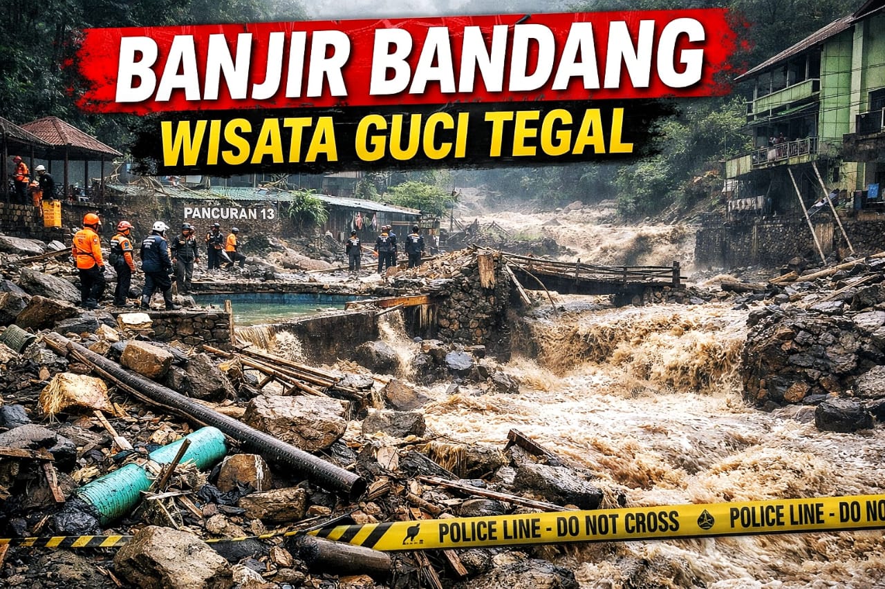 Literasi.co.id, TEGAL 20 Desember 2025 — Kawasan wisata pemandian air panas Guci, Kabupaten Tegal, Jawa Tengah, diterjang banjir bandang pada Sabtu, 20 Desember 2025, sekitar pukul 15.00 WIB. Peristiwa ini dipicu oleh hujan deras berkepanjangan di wilayah lereng Gunung Slamet, yang menyebabkan aliran sungai di kawasan tersebut meluap dan menghantam area wisata.