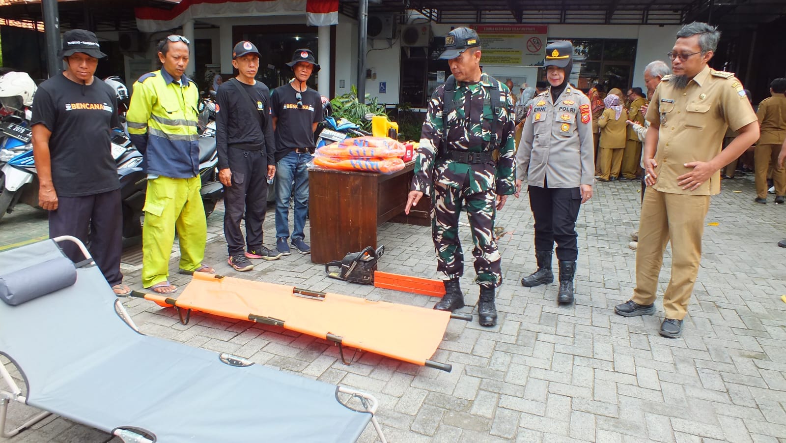 Kegiatan apel berlangsung dengan tertib dan khidmat, diakhiri dengan pengecekan kesiapan personel serta perlengkapan penanggulangan bencana oleh unsur gabungan TNI, Polri, dan aparatur Kecamatan Kesambi.