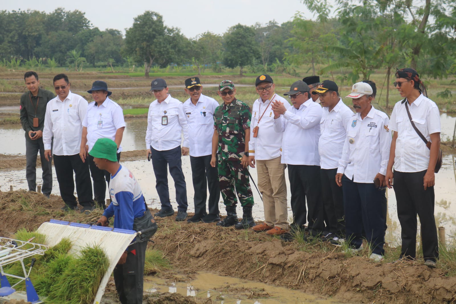 Hadir dalam kegiatan Dirjend Tanam Kementan-RI, Dr. Yudi Satro, SP., MP, Aster Kasdam III / SLW, Kolonel Inf Muhammad Ikbal Lubis, Wakil Bupati Indramayu, Ps. Dandim 0616 / Indramayu serta tamu undangan yang hadir.
