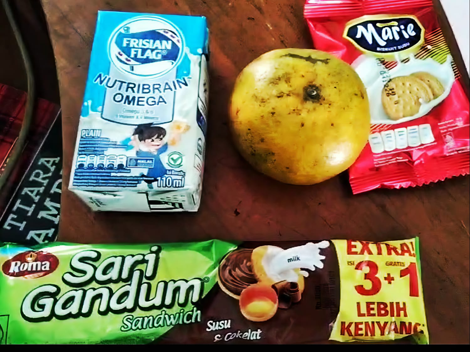 • 1 biskuit susu Marie kemasan sachet
