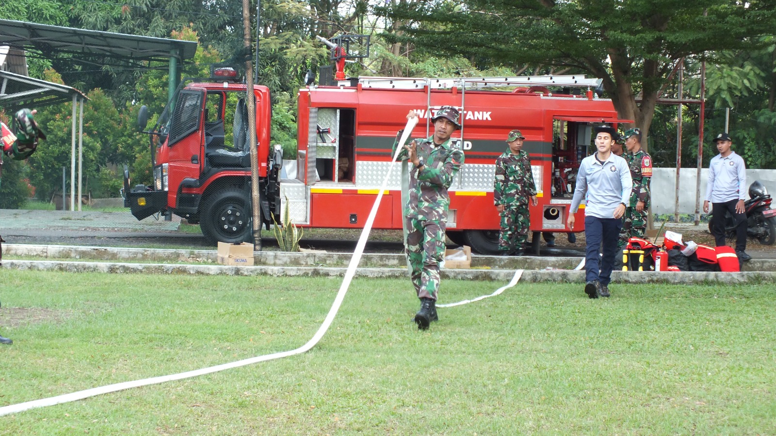 Latihan tersebut juga merupakan bagian dari persiapan pengoperasian mobil water tank bantuan dari Kemenhan RI.