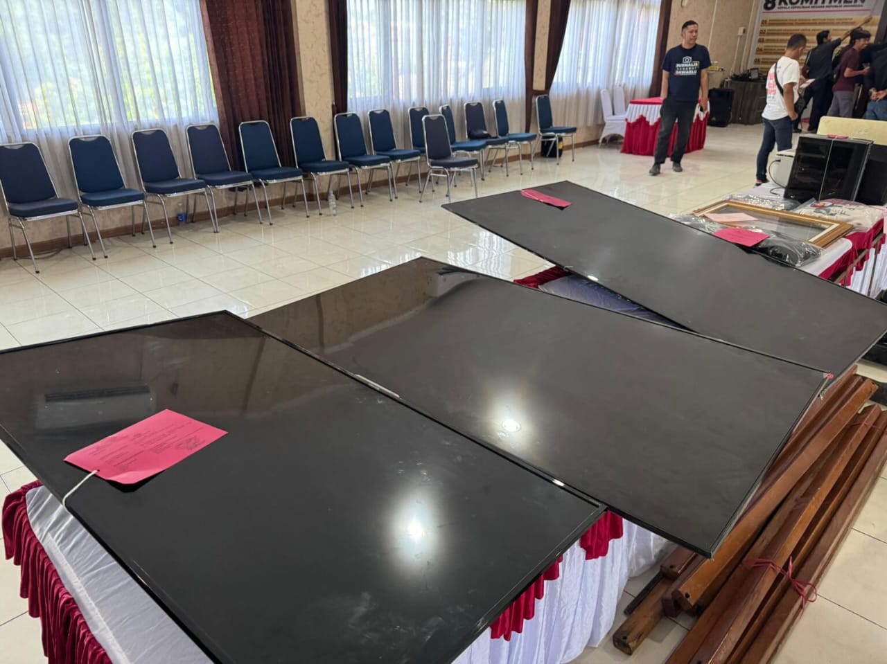 Polisi juga menyita puluhan barang bukti hasil penjarahan, di antaranya sepeda motor, perangkat elektronik, televisi 65 inci, komputer, printer, kursi rapat, uang tunai, hingga bendera merah putih yang dijarah dari gedung DPRD.