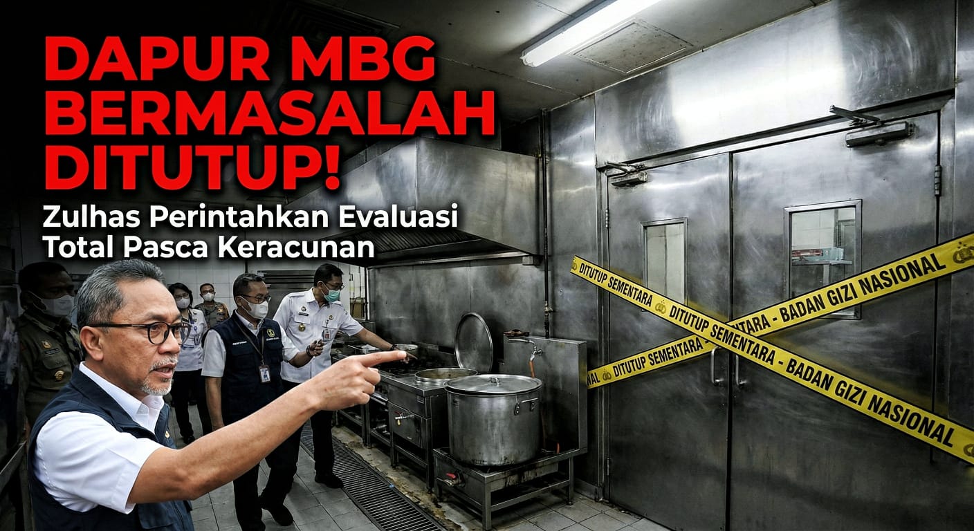 Literasi.co.id, Jakarta, 23 November 2025 — Pemerintah melalui Menteri Koordinator Bidang Pangan Zulkifli Hasan menegaskan penutupan sementara terhadap dapur pengelola program Makan Bergizi Gratis (MBG) atau Satuan Pelayanan Pemenuhan Gizi (SPPG) yang terbukti bermasalah, menyusul meluasnya kasus keracunan penerima manfaat di berbagai wilayah Indonesia.