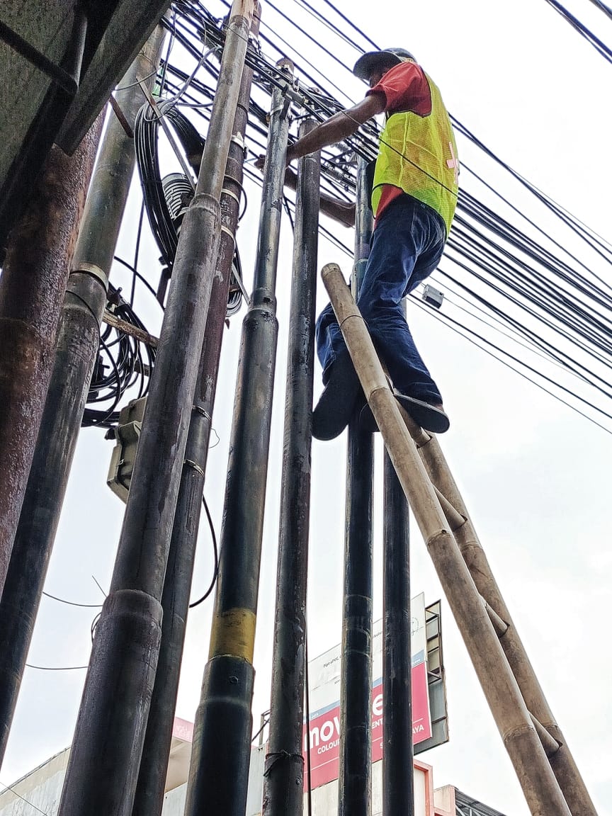 Selain itu, kabel-kabel jaringan yang menjuntai semrawut dan tak terurus turut memperburuk situasi. Banyak kabel terlihat kendor, rendah, bahkan terlilit tumbuhan liar tanpa ada upaya perawatan dari pihak penyedia jaringan. Warga pun menilai kondisi ini sebagai bentuk ketidakpedulian dan lemahnya pengawasan dari instansi terkait.