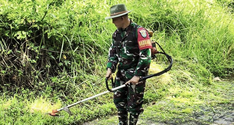 Sebagai Wujud Kepedulian Lingkungan Koramil 1503/Ciniru Karya Bakti Lakukan pembersihan jalan bersama Fokopimcam Ciniru