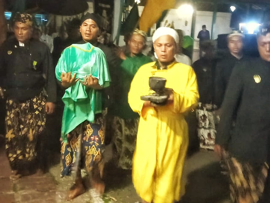 Ritual ini diawali dengan pembakaran dupa dan pembuatan ukup, sebagai simbol datangnya sosok yang membawa keharuman dan kedamaian ke dunia. Prosesi kemudian berlanjut dengan tradisi pemayungan pusaka, hingga mencapai puncaknya pada siraman panjang jimat, yaitu ritual penyucian benda-benda pusaka yang diwariskan secara turun-temurun.